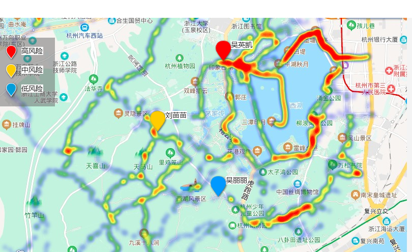 可繪制出企業(yè)人員健康地圖,實時掌握員工健康狀況,對異常情況及時預(yù)警。?同時根據(jù)公開疫情信息,繪制風險熱力圖,結(jié)合定位信息,為員工提示危險區(qū)域,做好健康防護指引。