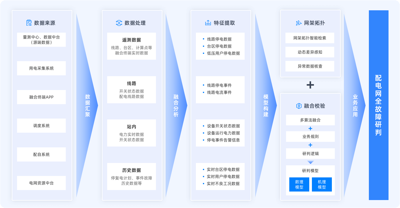 集成多系統(tǒng)技術(shù)優(yōu)勢,全量接入數(shù)據(jù)并融合分析,構(gòu)建動態(tài)拓撲圖,結(jié)合AI與機理模型校核,精準定位故障,支撐全流程數(shù)字化管控。