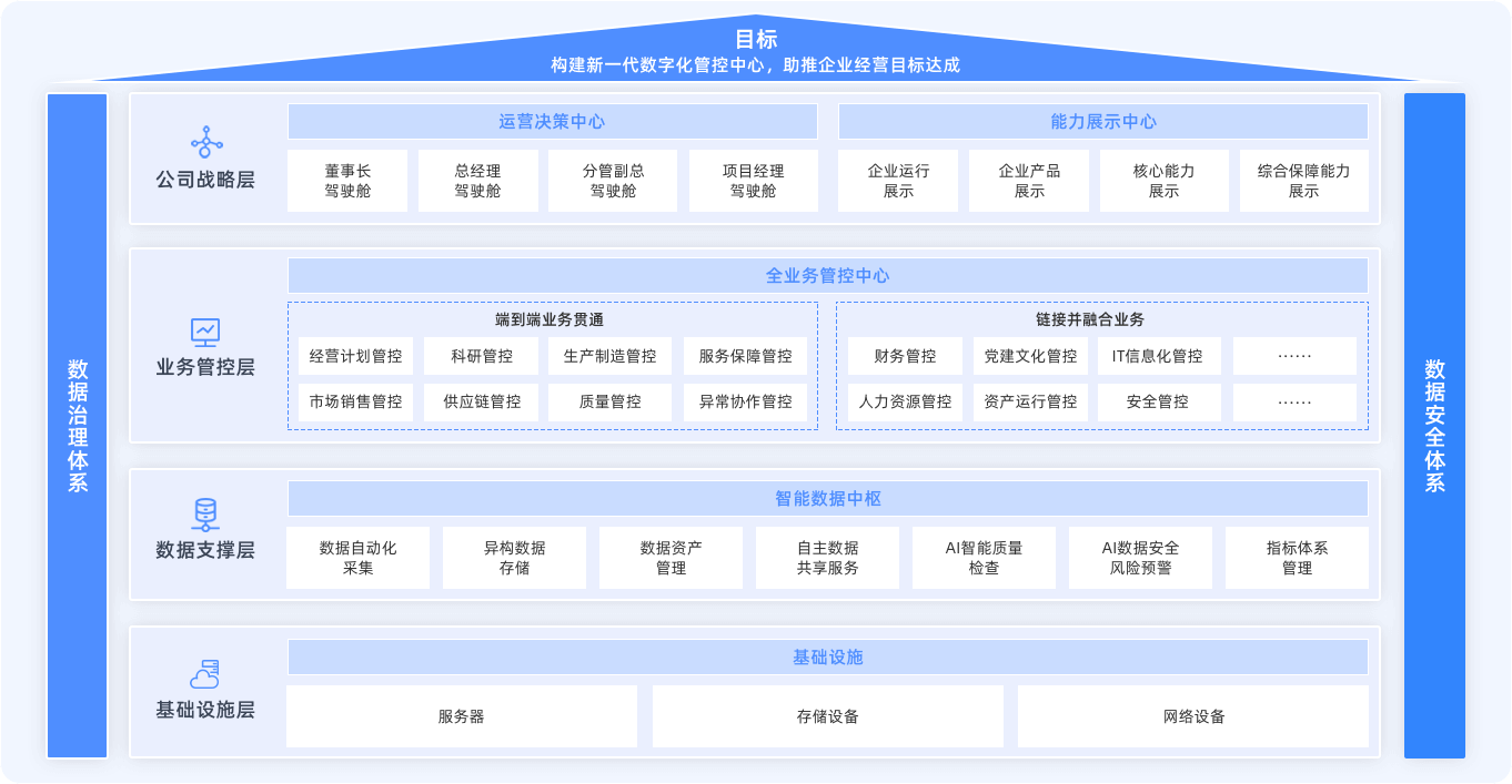 面對復雜多變的市場環(huán)境和日益激烈的競爭,以往基于層層匯報或會議的模式難以支撐領導快速決策。新一代智慧運營管控以“戰(zhàn)略穿透、數(shù)據(jù)驅(qū)動、敏捷響應、價值外化”為核心,通過端到端貫通與智能協(xié)同,實現(xiàn)“目標可追蹤、執(zhí)行可調(diào)控、問題可閉環(huán)、能力可感知”,最終推動企業(yè)從傳統(tǒng)經(jīng)驗管理向數(shù)據(jù)智能驅(qū)動的精益運營轉(zhuǎn)型,為可持續(xù)競爭力提供系統(tǒng)化支撐,助力數(shù)字化轉(zhuǎn)型升級。