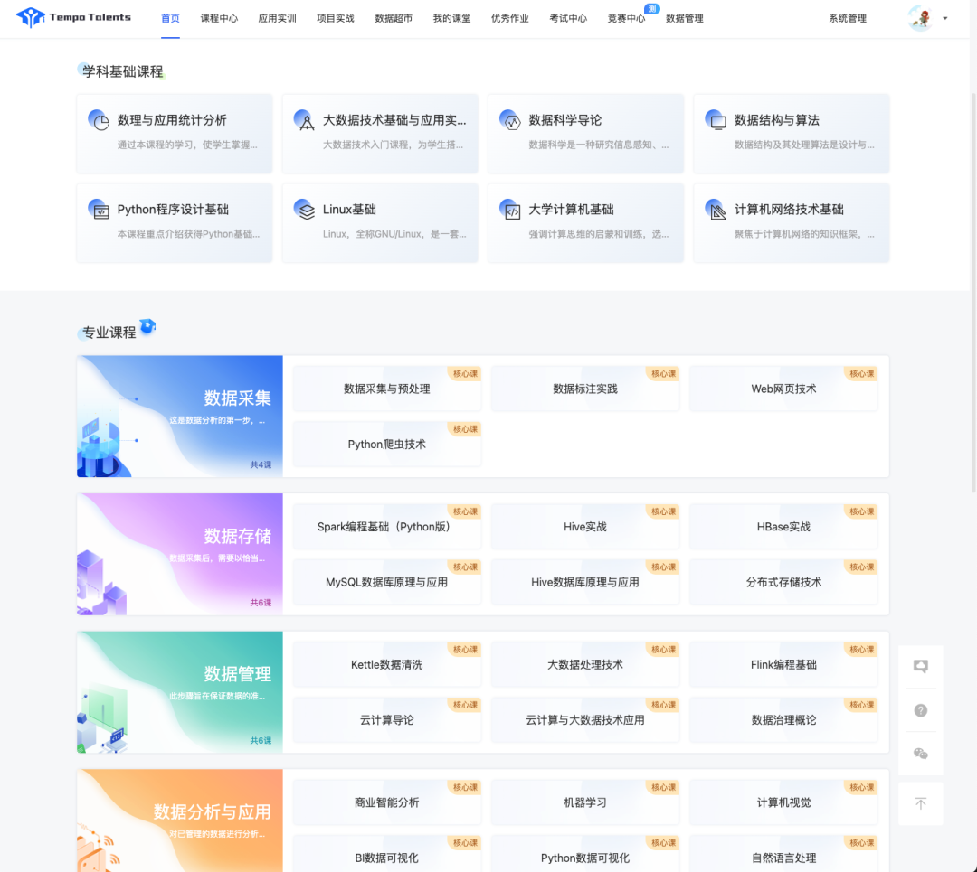實訓平臺通過一個完整的項目案例實戰(zhàn),讓學生身臨其境的了解產(chǎn)業(yè)數(shù)字化轉(zhuǎn)型過程中數(shù)據(jù)治理的全流程,理解數(shù)據(jù)治理戰(zhàn)略的意義和目標、實踐數(shù)據(jù)資產(chǎn)采存管用全流程,在項目應(yīng)用過程中將所學知識、技能進行綜合應(yīng)用,基于項目實戰(zhàn)培養(yǎng)學生問題求解能力。